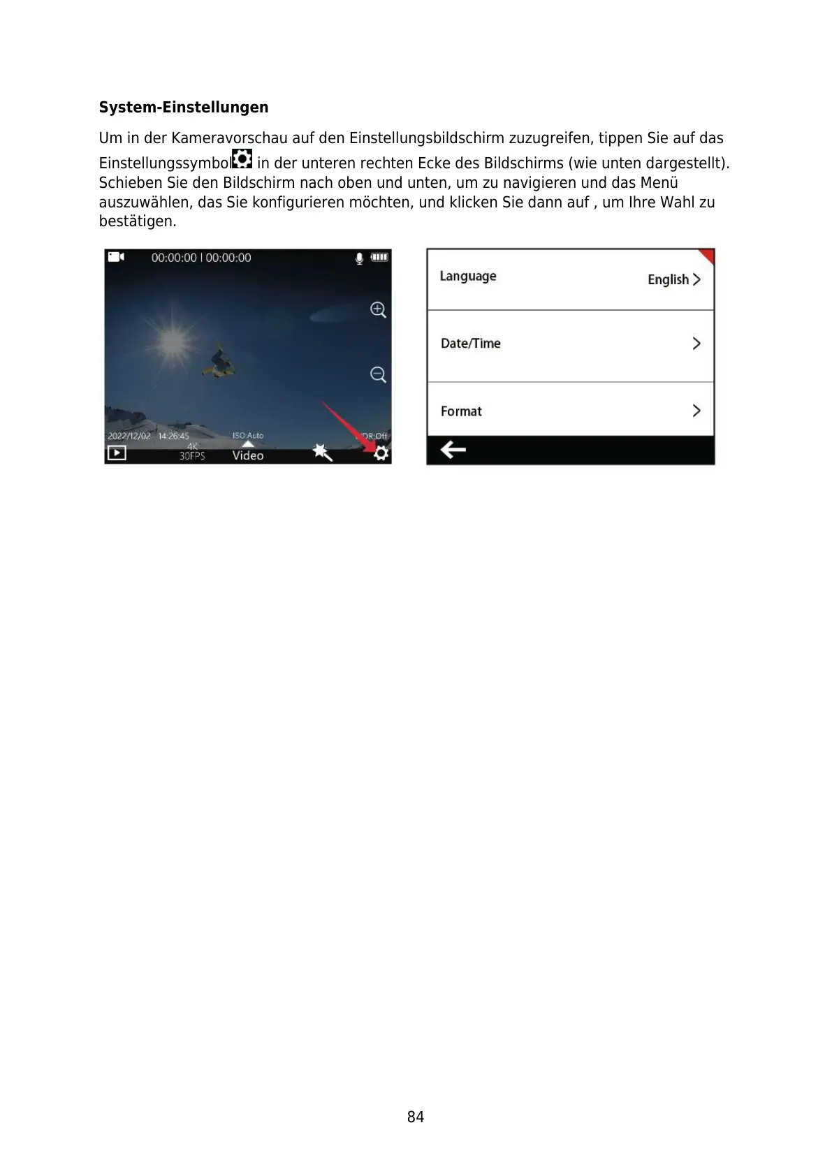 Um in der Kameravorschau auf den Einstellungsbildschirm zuzugreifen, tippen Sie auf das