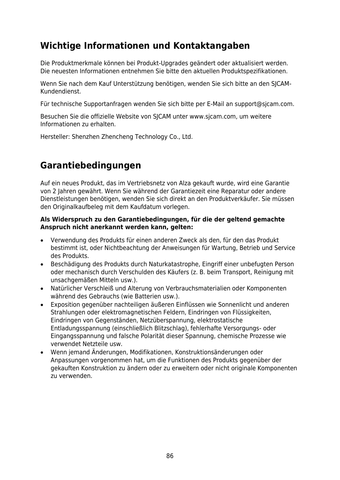 Für technische Supportanfragen wenden Sie sich bitte per E-Mail an support@sjcam.com.