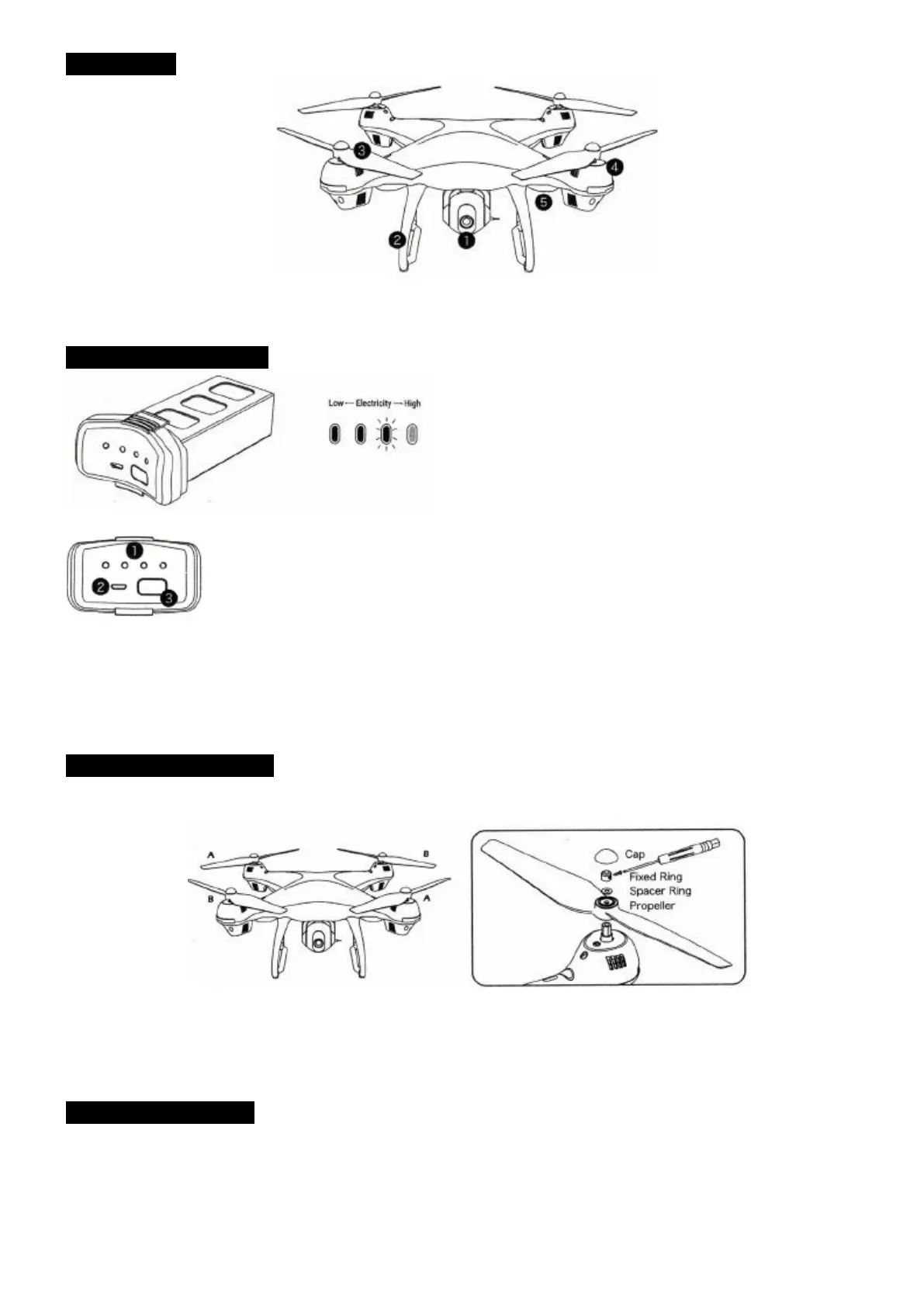 Please note that the letter "A" or "B" is printed on each propeller, and make sure all the propellers are