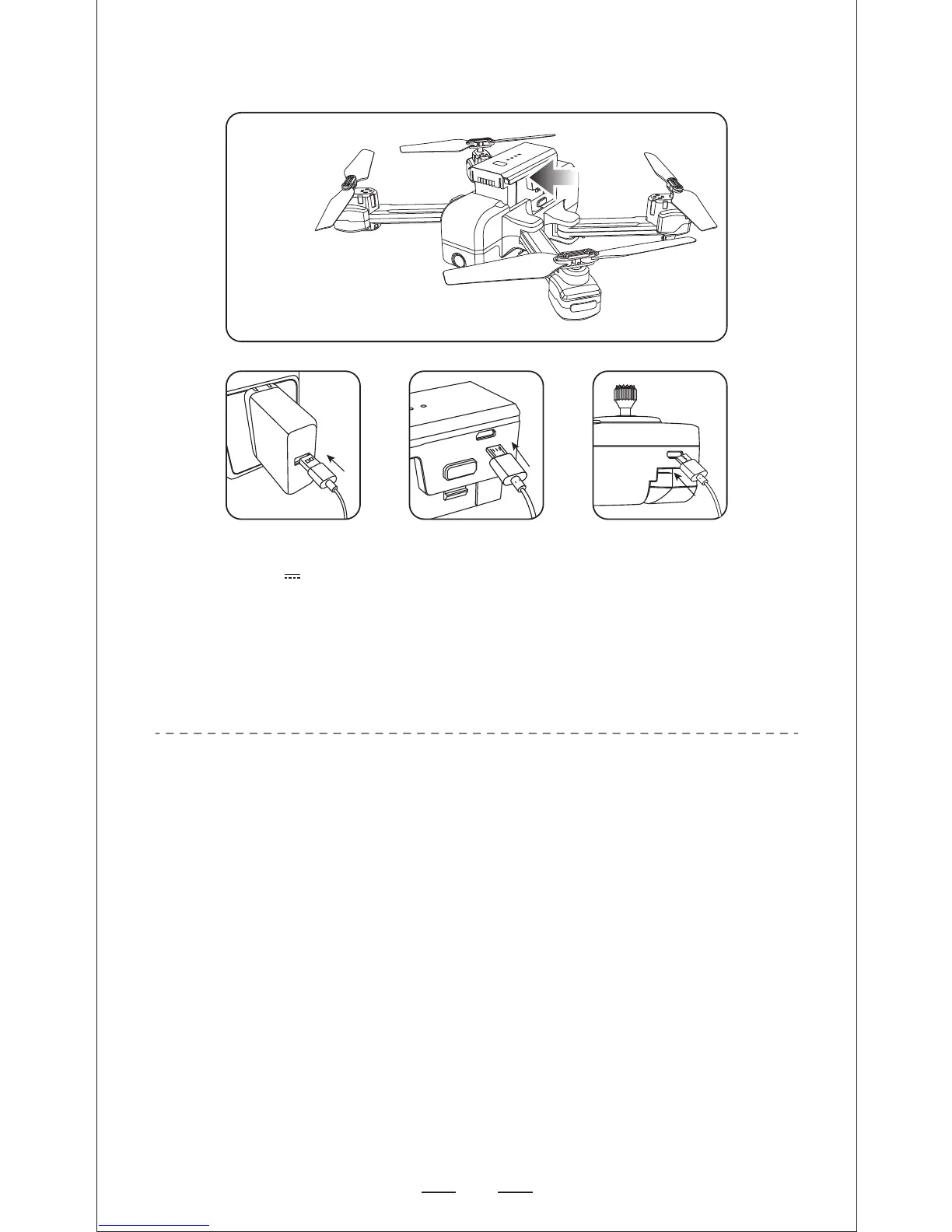 ON / OFF, the Quad-copter can be charged. Insert the USB cable into the