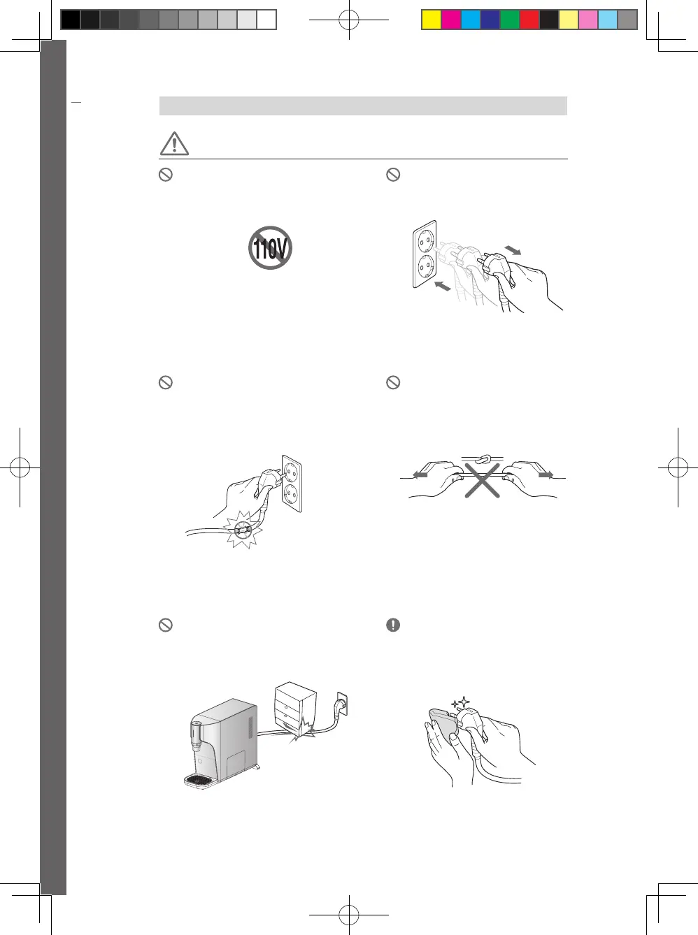 • It may result a short circuit causing an electric shock or a