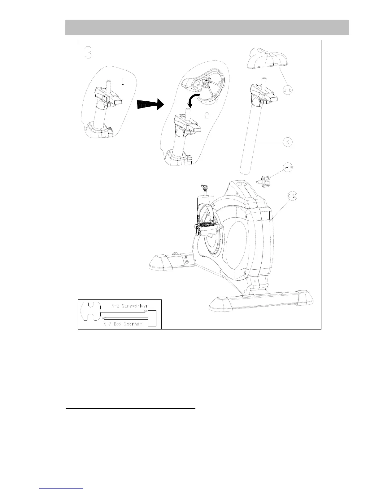 Montieren Sie den Sattel (G-6) oben auf der Sattelstütze (K) wie abgebildet.