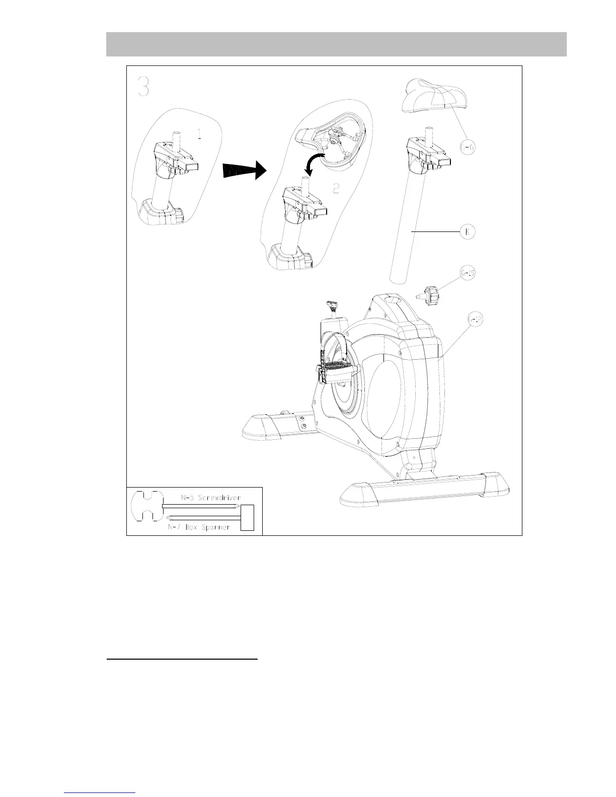 Fix the seat (G-6) onto the seat support tube (K) as per the drawing above.