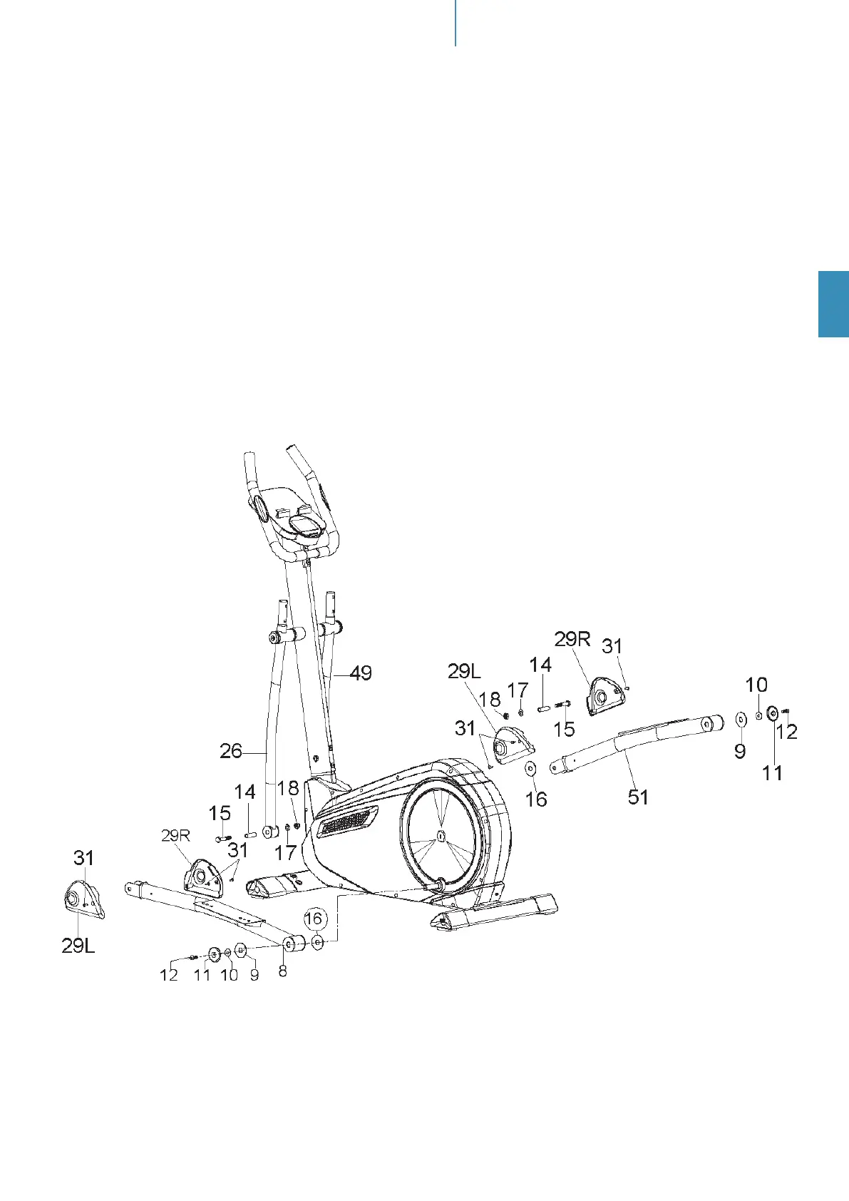 Fit a cover (29L) and a cover (29R) to the left pedal tube (8) with 3 screws (31, pre-mounted on the