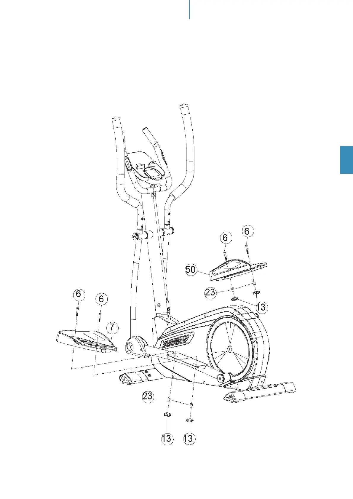 Monter la pédale gauche (7) sur le tube de pédale gauche (8) avec 2 vis M8×45 (6), des entretoises