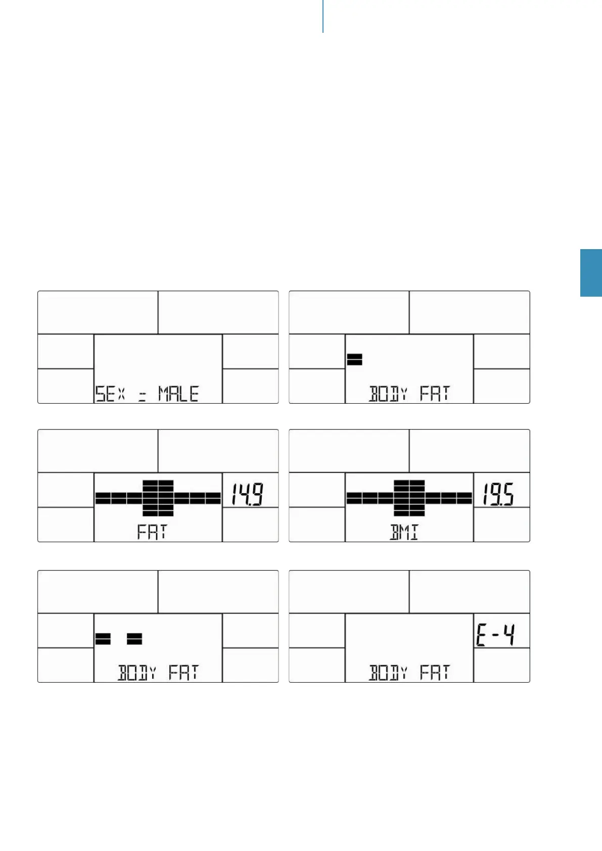 « E-4 » apparaît (gure 26) si les valeurs de % de masse graisseuse ou d’IMC sont trop faibles (<5) ou trop
