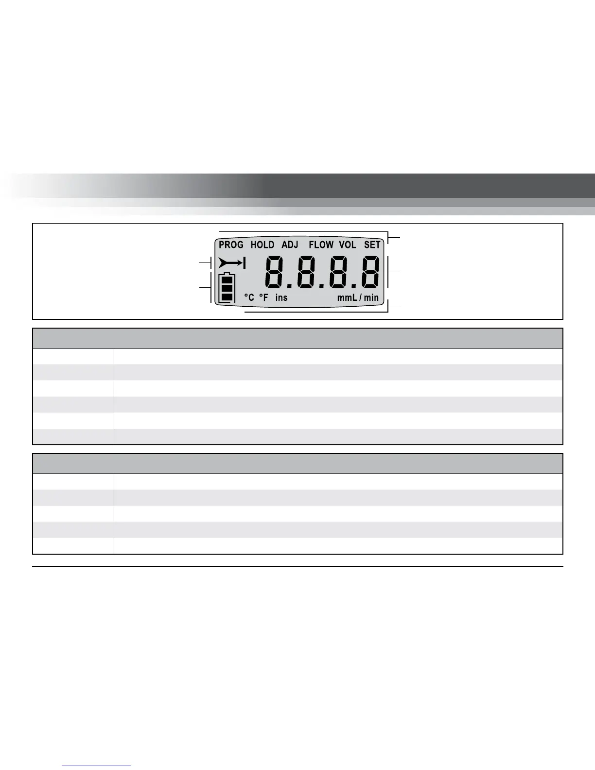 ins or mm Pump back pressure in inches of water or millimetres of mercury (Enhanced Display Mode only)