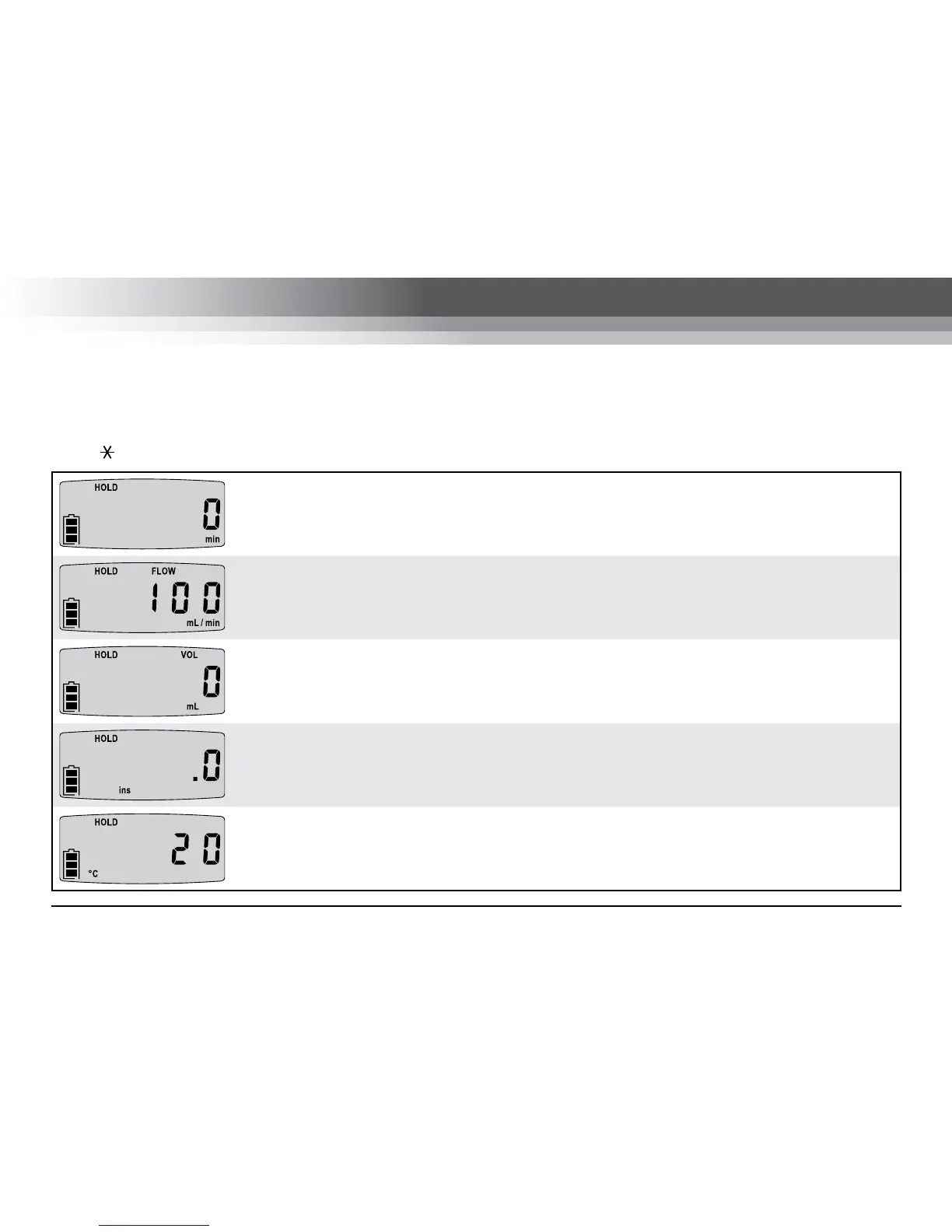Pump back pressure in inches of water or millimetres of mercury. Enhanced Display