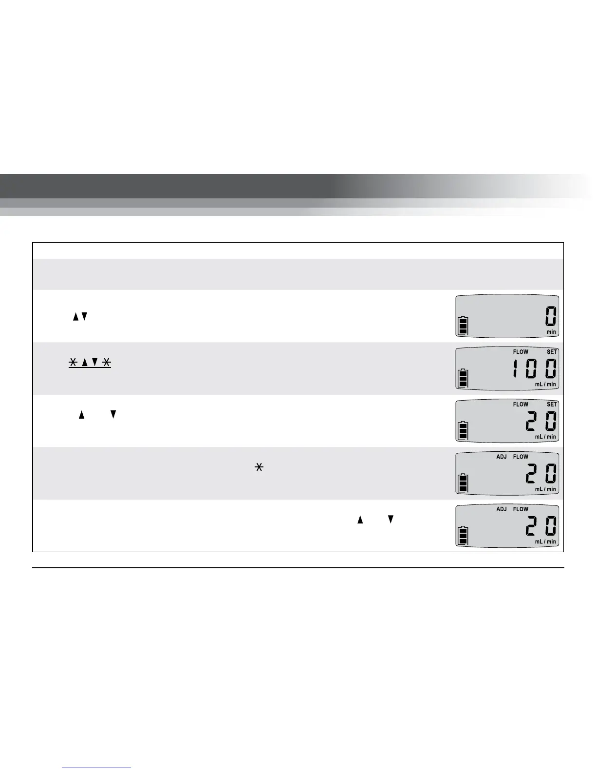 Press . The LCD screen will show the flow rate setting screen with ‘SET’