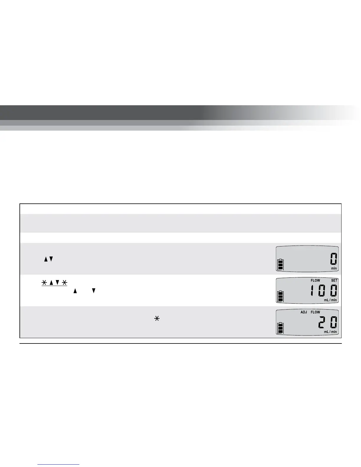 flashing. Use the and buttons to set the required flow rate in millilitres per minute
