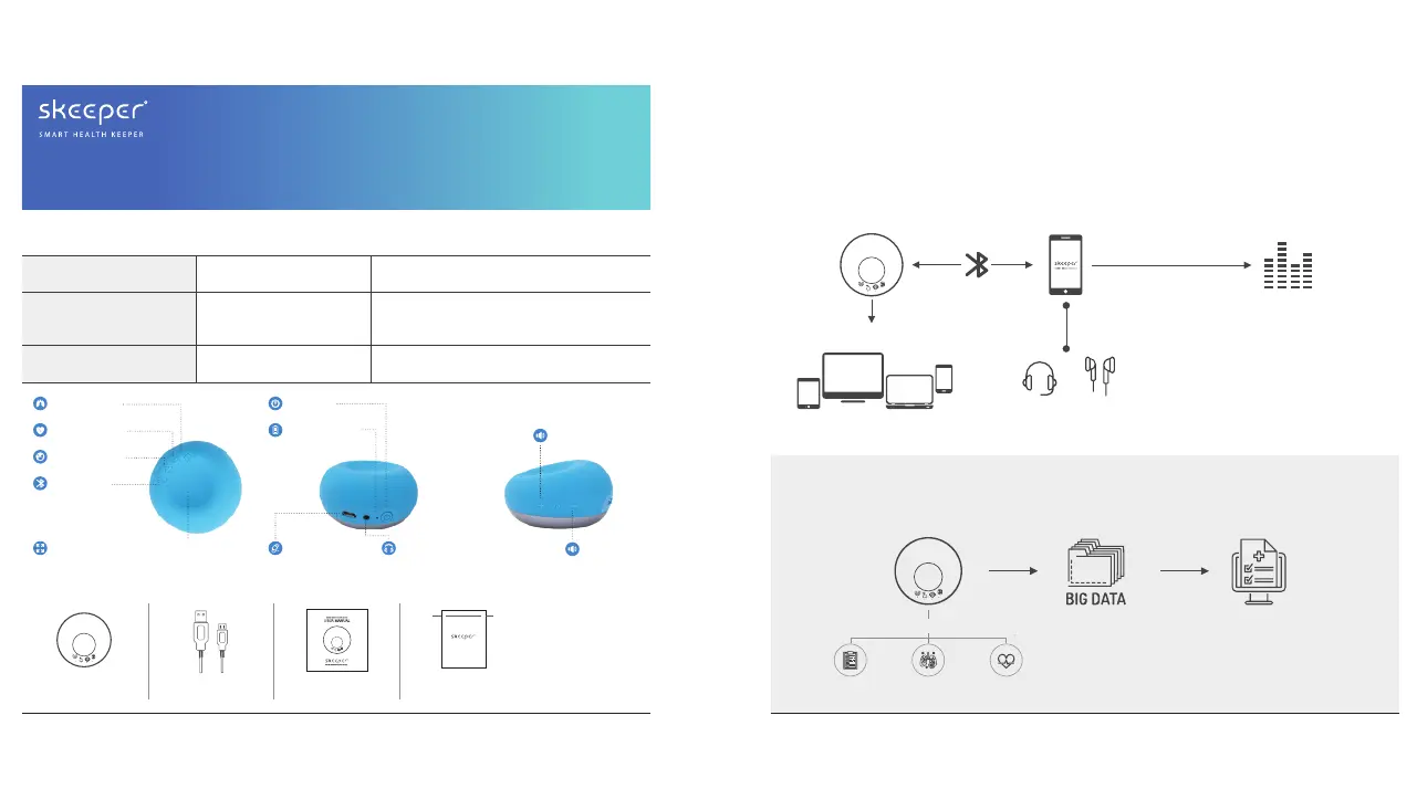 ① Can measure & record audio through the Skeeper app via Bluetooth.