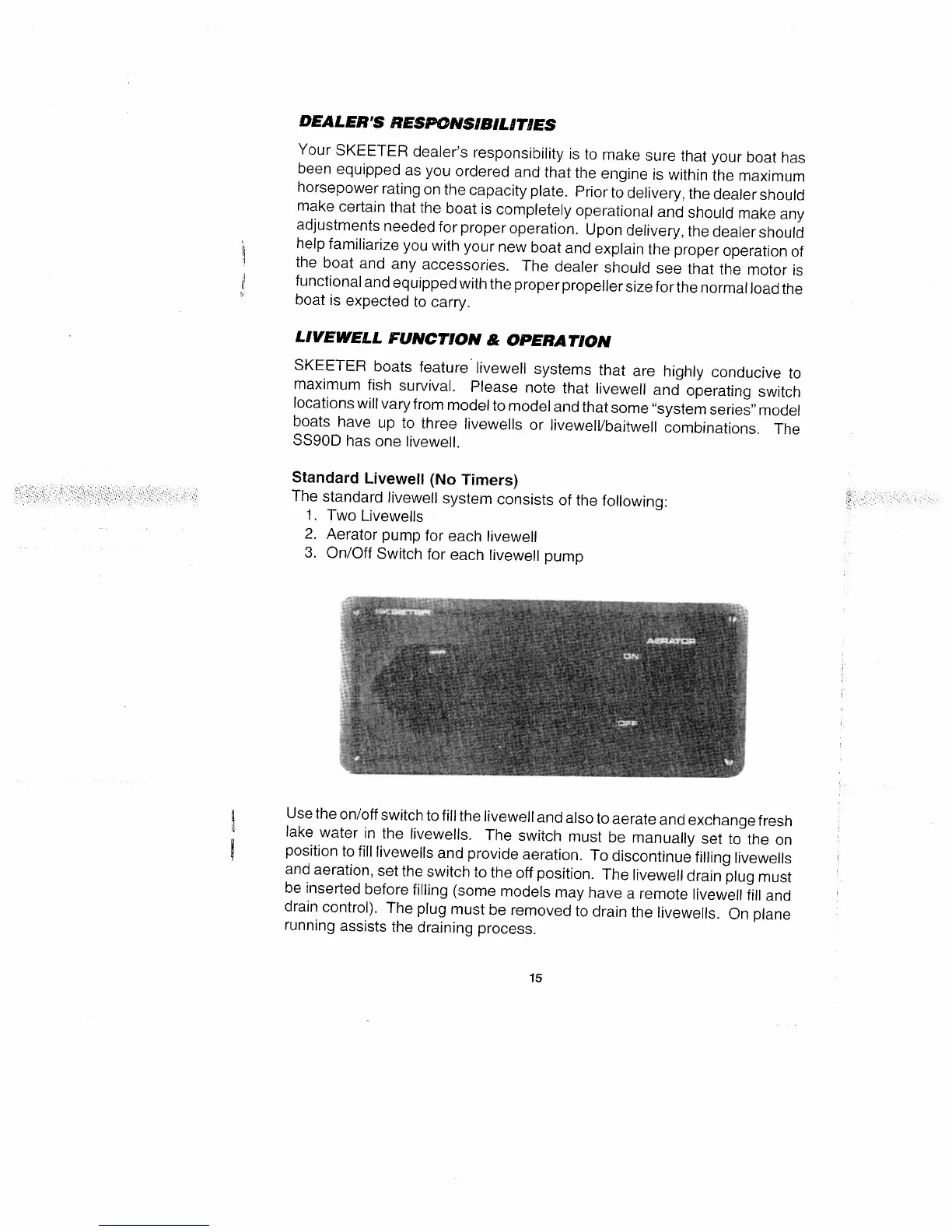 Skeeter 200-SX - Livewell Function and Operation; Standard Livewell (No Timers)