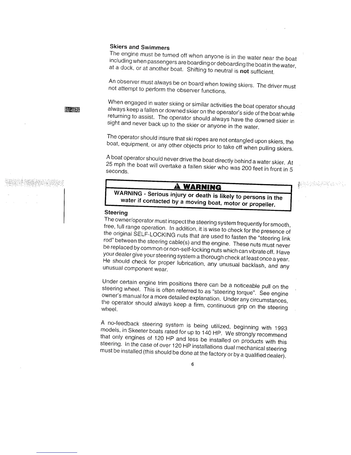 Skeeter 200-SX - Safety During Water Activities; Skiers and Swimmers Safety; Steering System Inspection