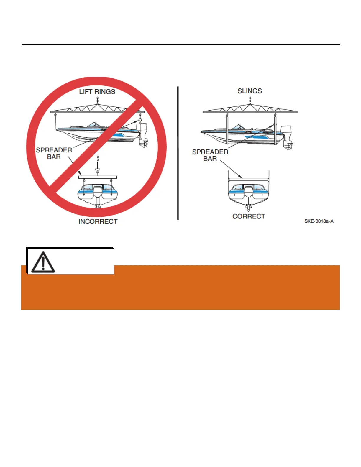 • Use spreader bars to avoid side stress to the hull that may cause cracks in the gelcoat and