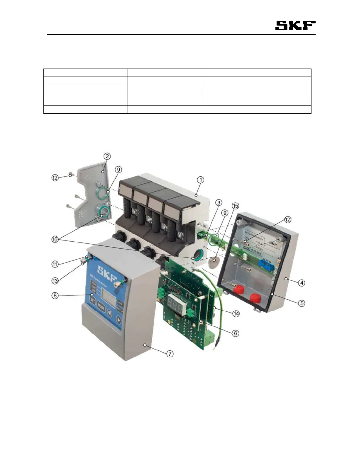 Table 22 SKF Flowline monitor FL 15, parts