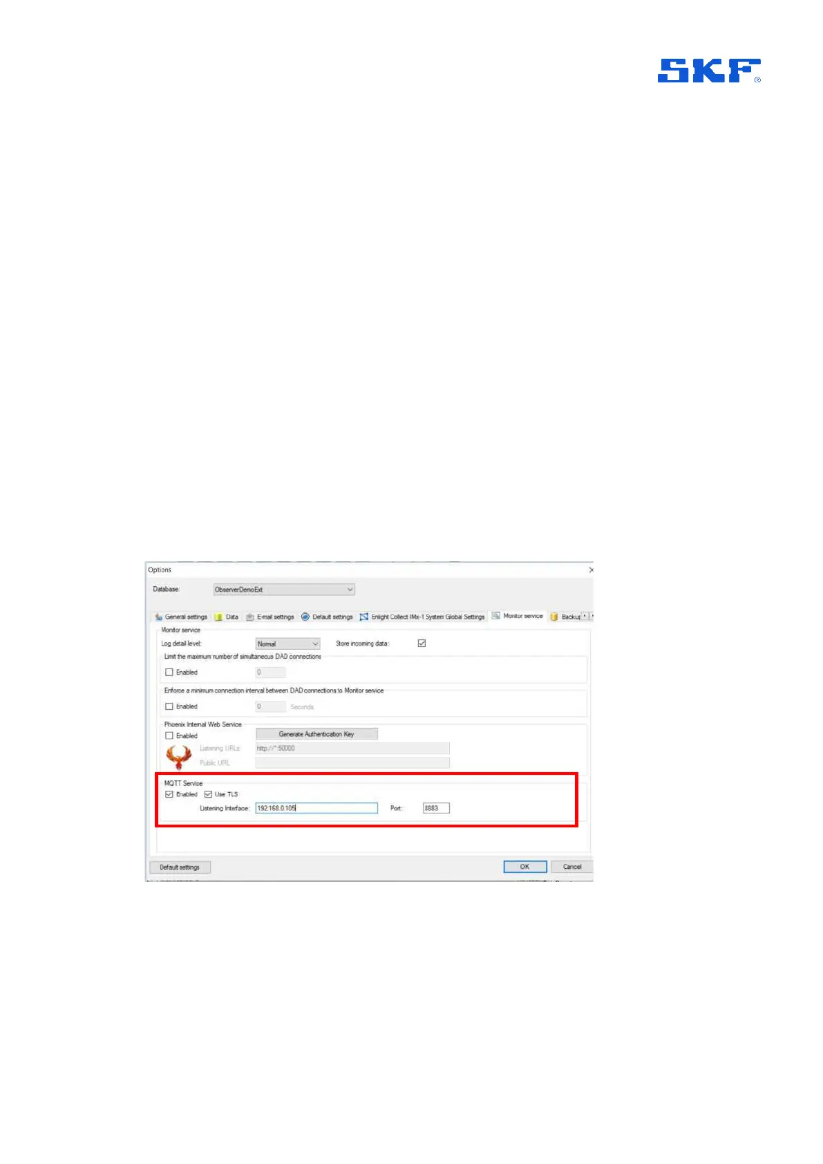 2.1.1 Communication with the SKF Enlight Collect IMx-1 system