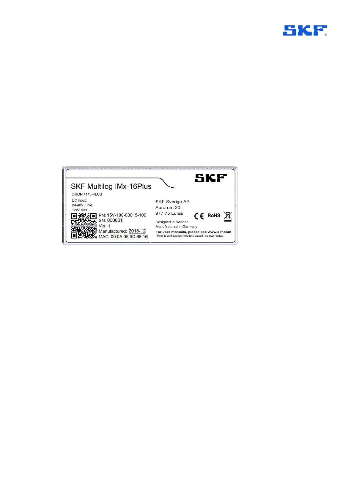 On the front face of the case a manufacturing data label, Figure 18, confirms product
