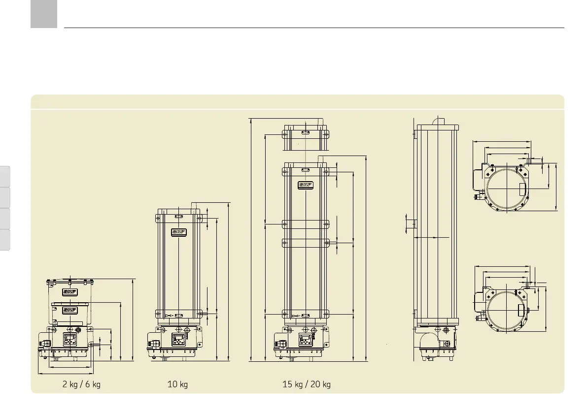 4.2.4 Mounting dimensions, design with control unit, 12 VDC / 24 VDC