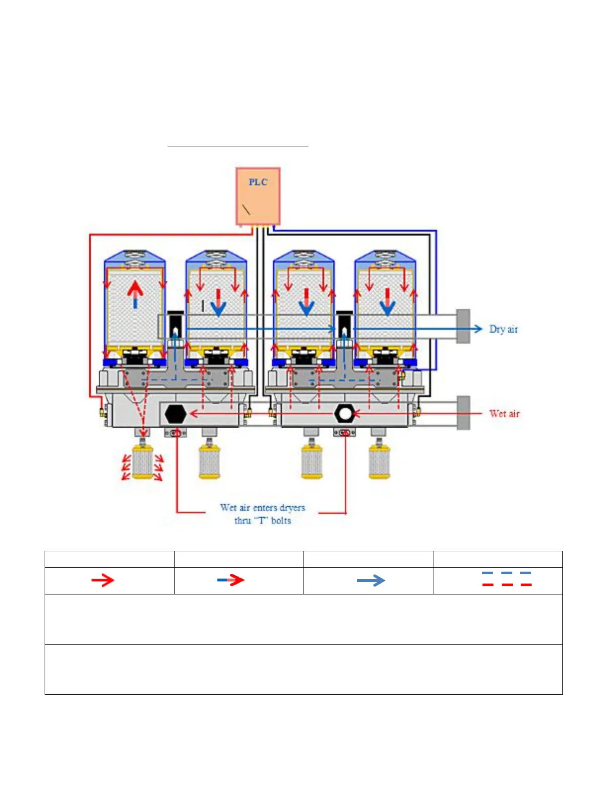 Cartridge 1 regenerates for 45 sec. Cartridge 2, 3, 4 receives wet air. PLC switches