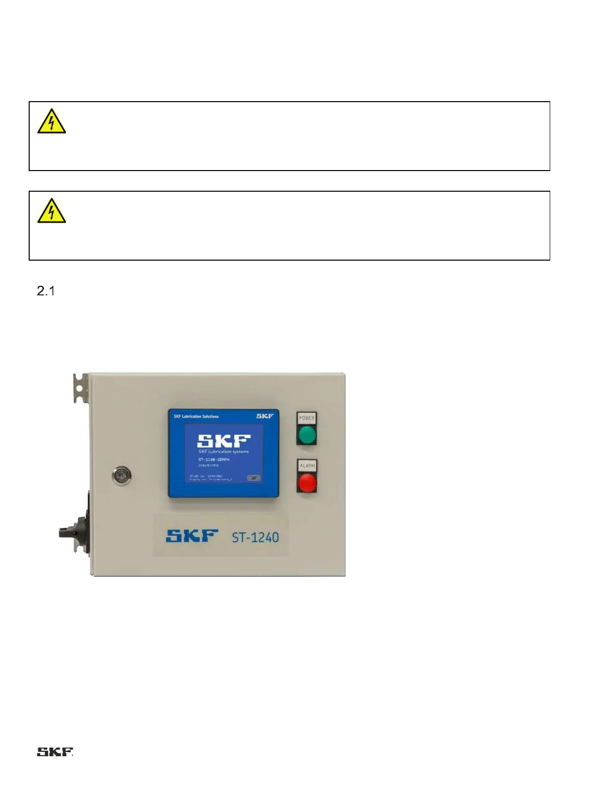 ST-1240-GRAPH is a microprocessor-based control centre for SKF Dual-line (DuoFlex), SKF Single-line (MonoFlex) and