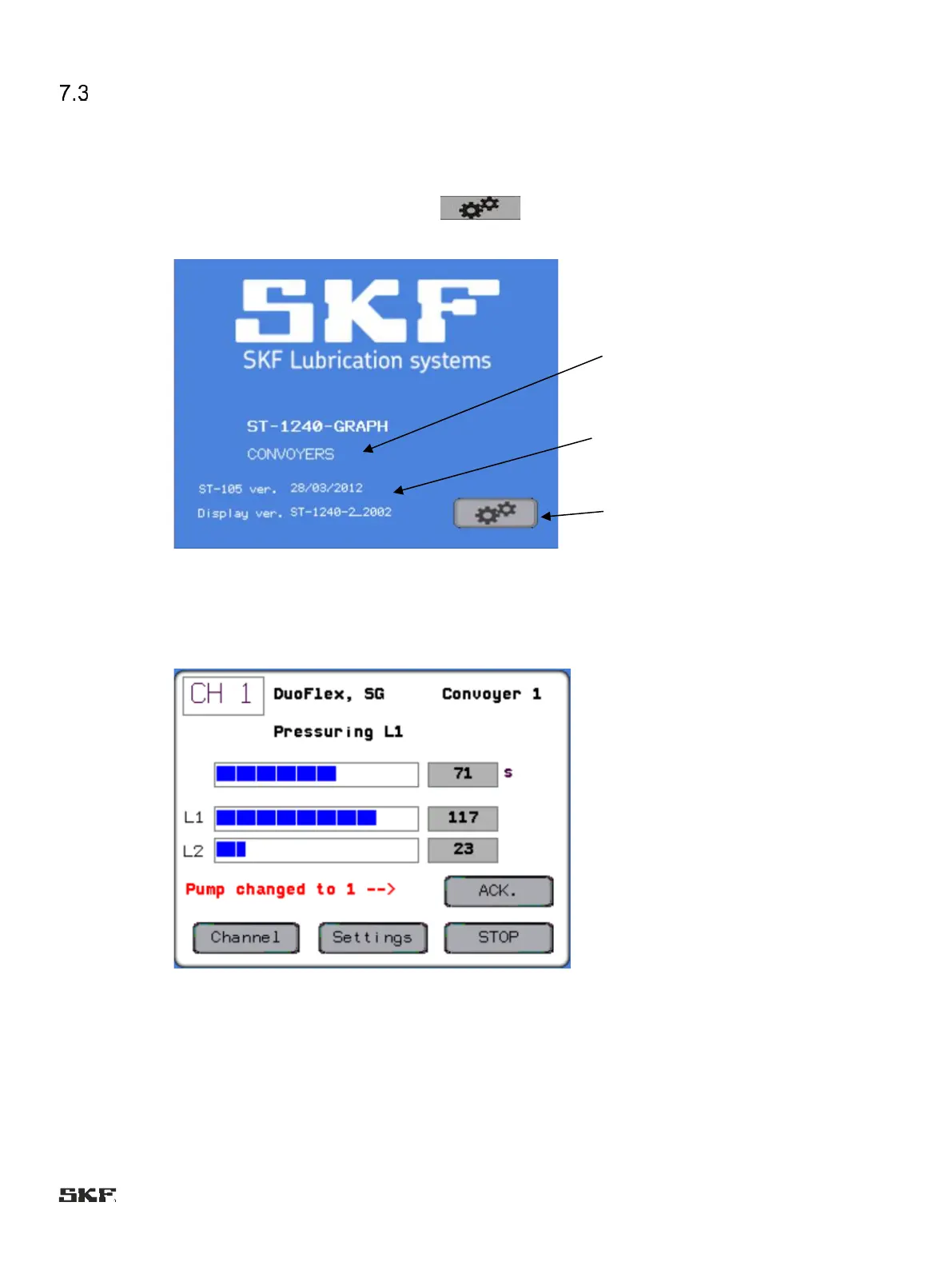 Go to the lubrication channel display by pressing the button . The status display for channel 1 opens.