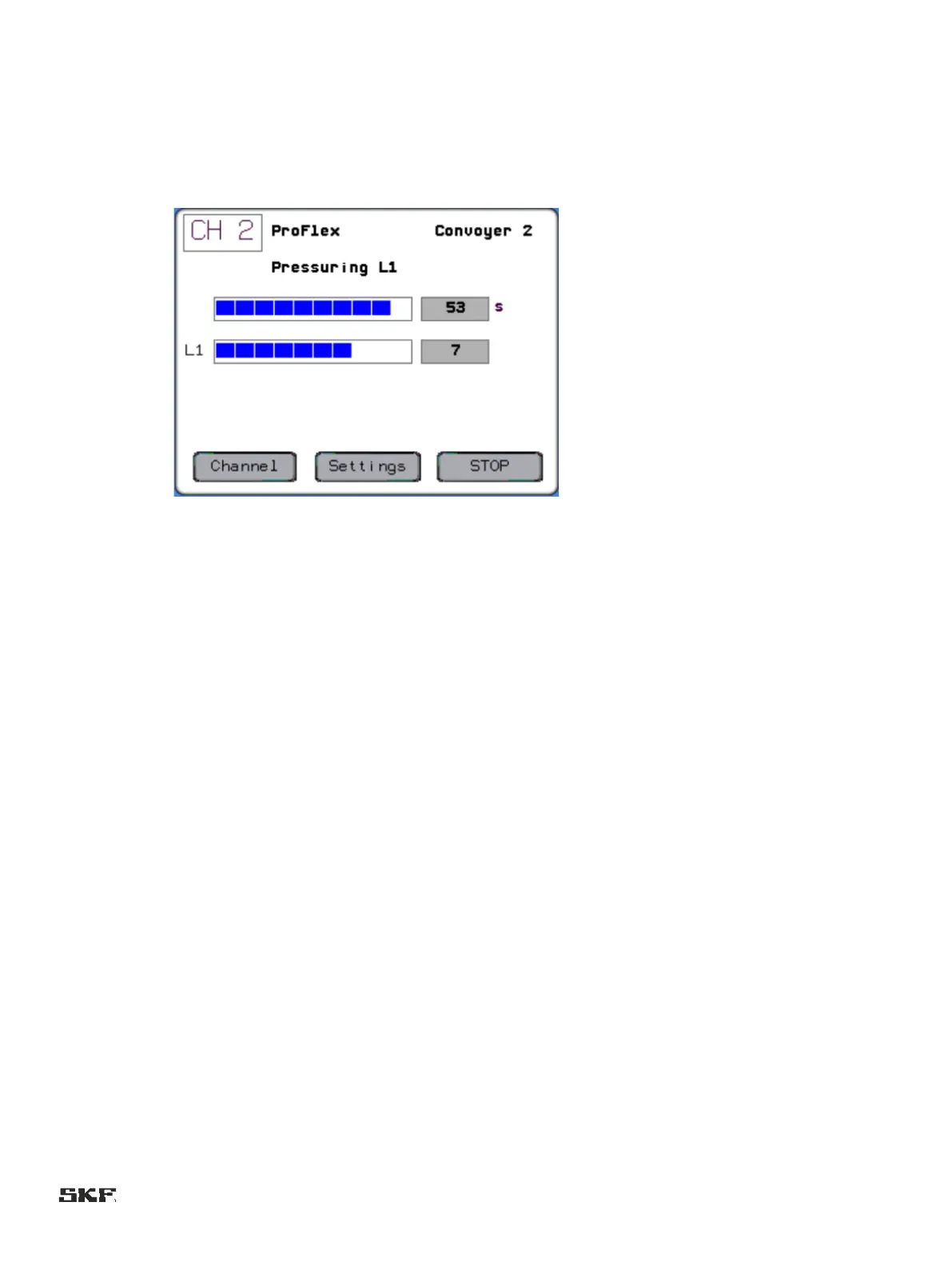 " Channel: Press the button to display the status display for another lubrication channel.