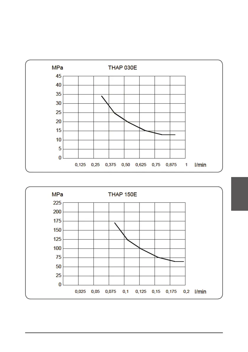 dell’olio è riportata sull’asse orizzontale. Il grafico mostra le prestazioni dell’unità THAP...E,