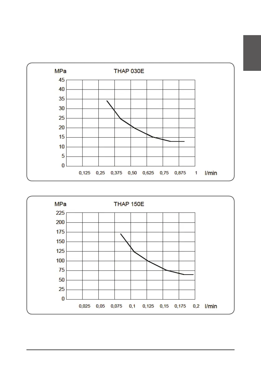 the horizontal axis. The charts show the performance of the THAP...E, when operated with