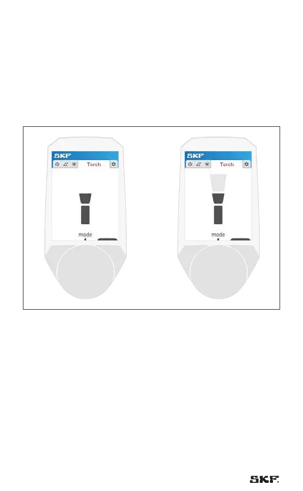 O modo lanterna permite usar o estroboscópio como lanterna.