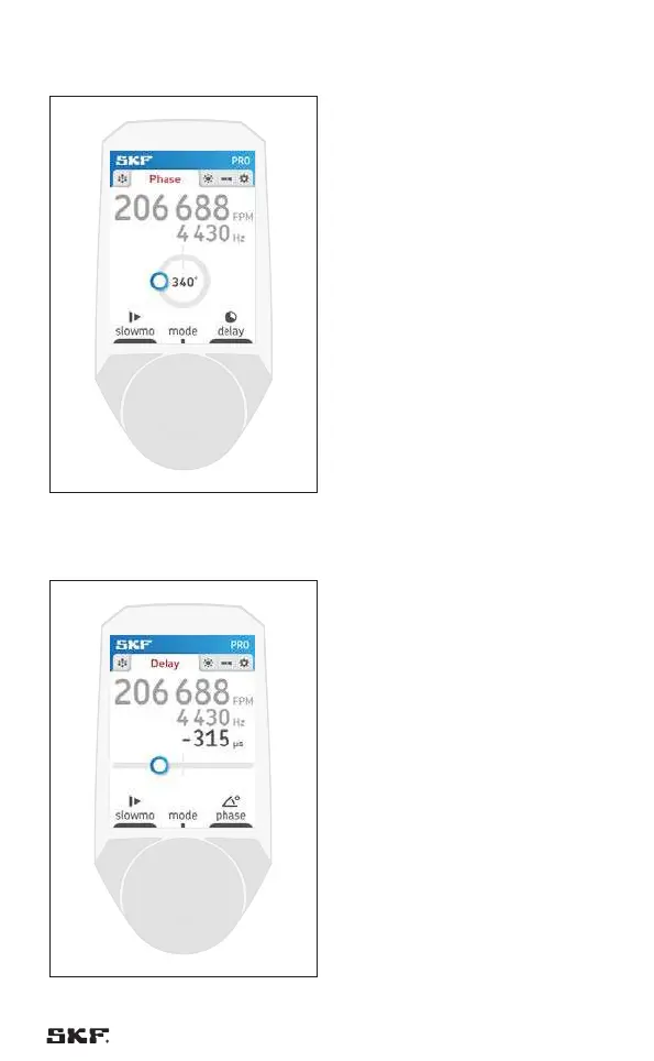 Taste 1 (Phase) oder Taste 2 (Delay).