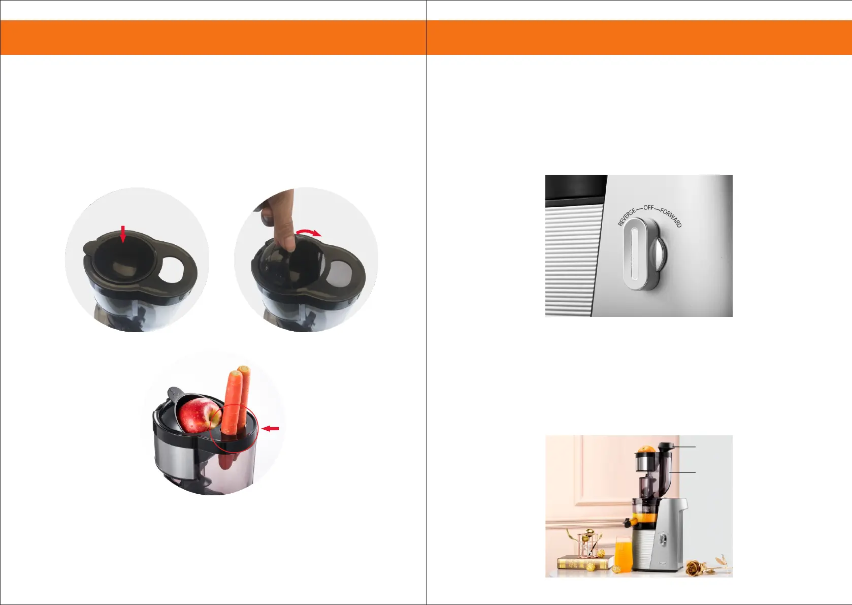 Forward: push down fruits and vegetables for juicing.