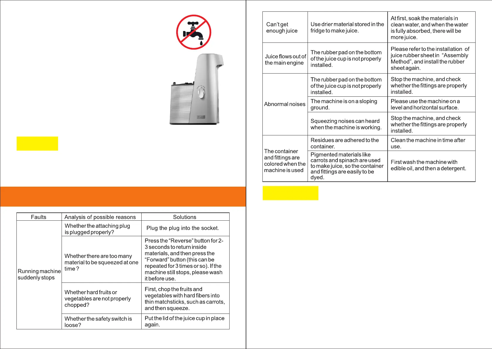 ●If the machine does not work: please check whether the power is properly