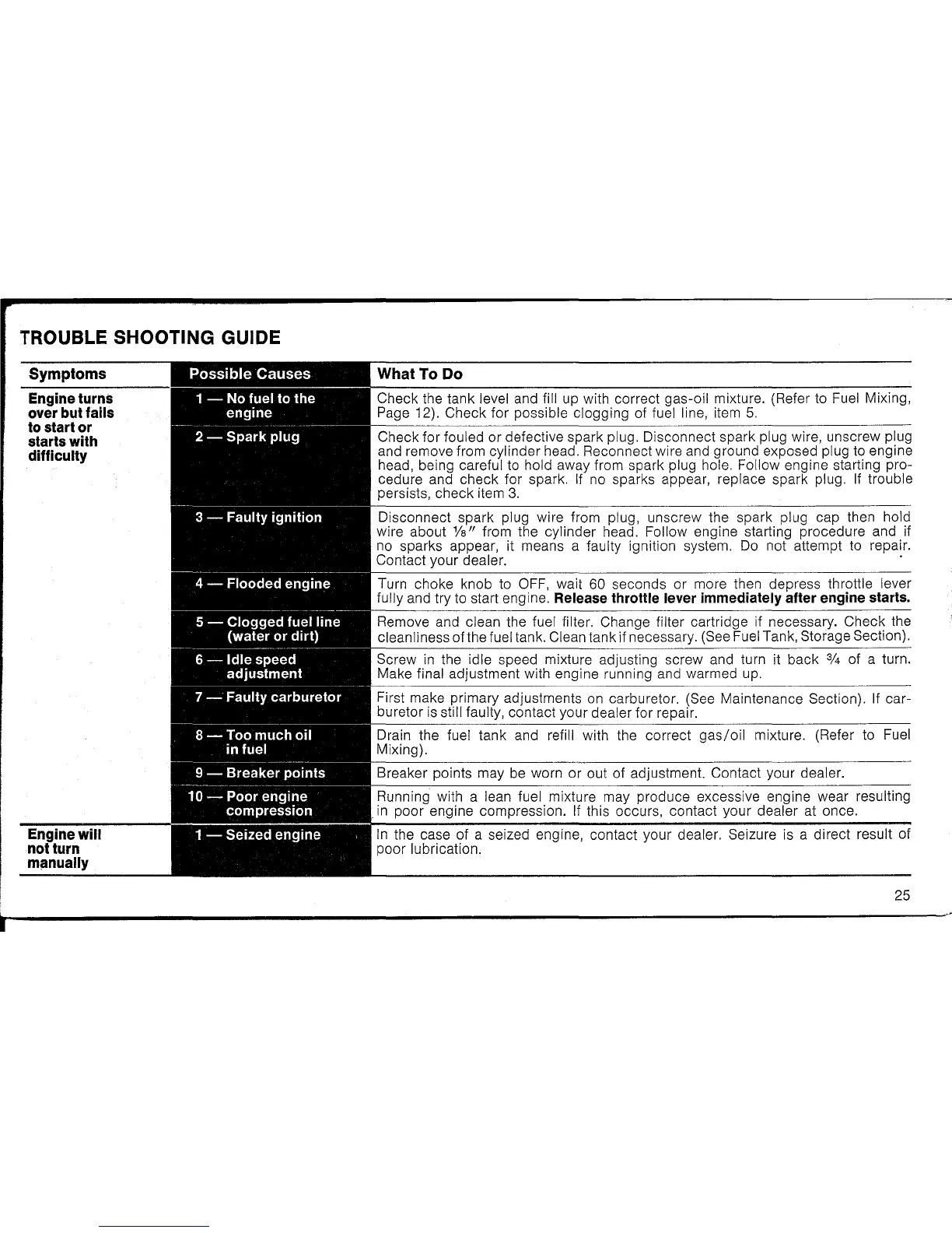 with correct gas-oil mixture. (Refer to Fuel Mixing,