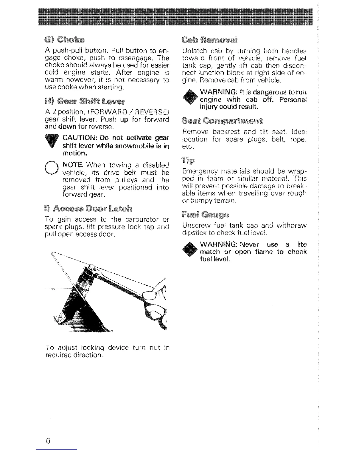 dipstick to check fuel level.