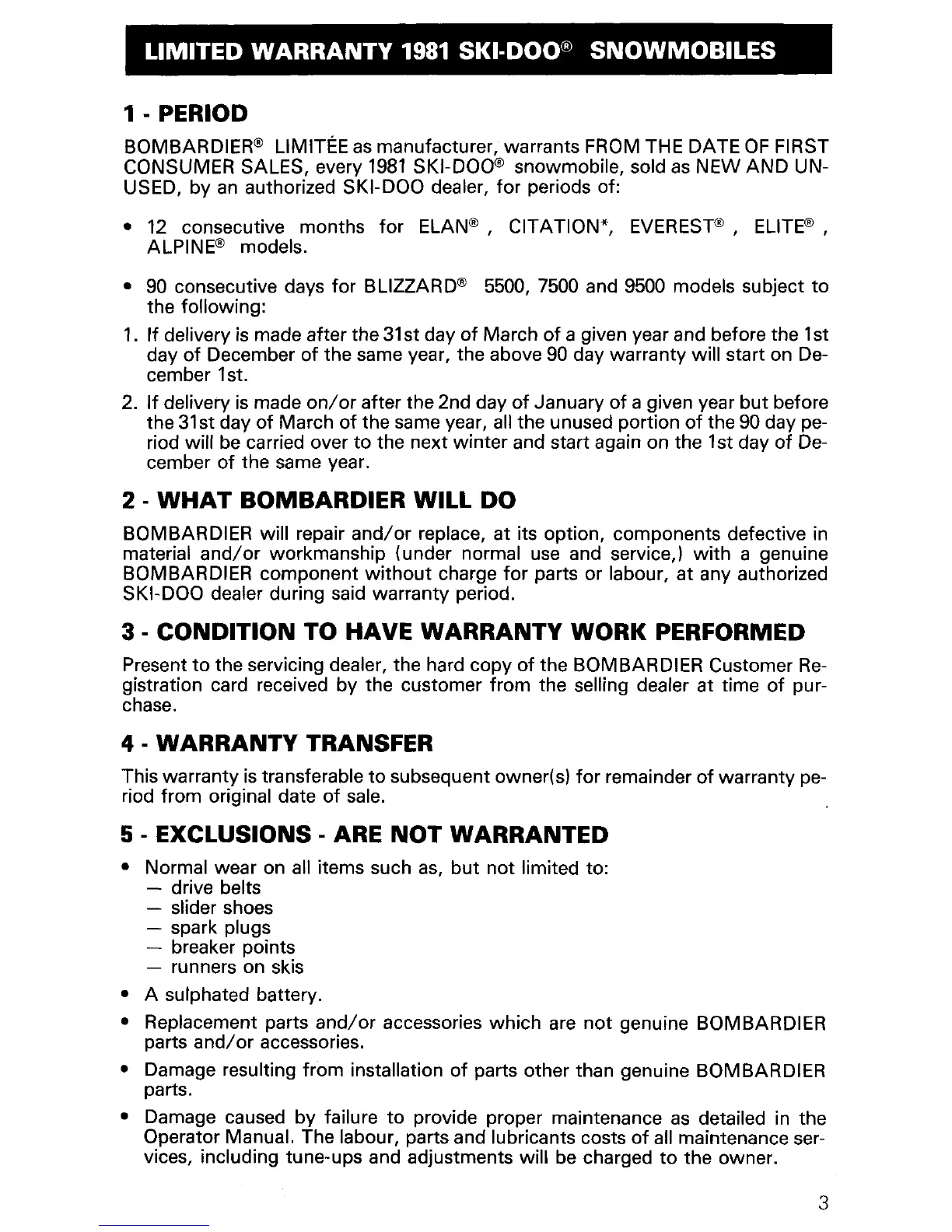 • Damage resulting from installation of parts other than genuine BOMBARDIER