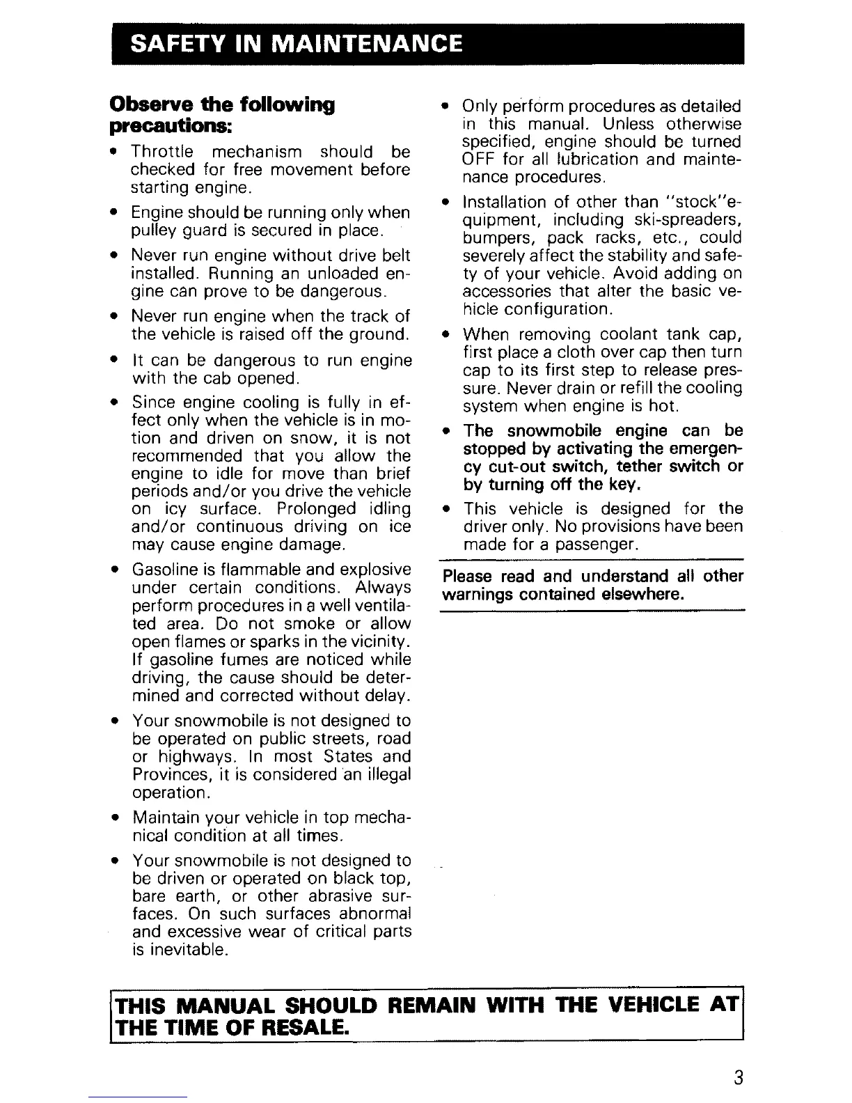 • Your snowmobile is not designed to