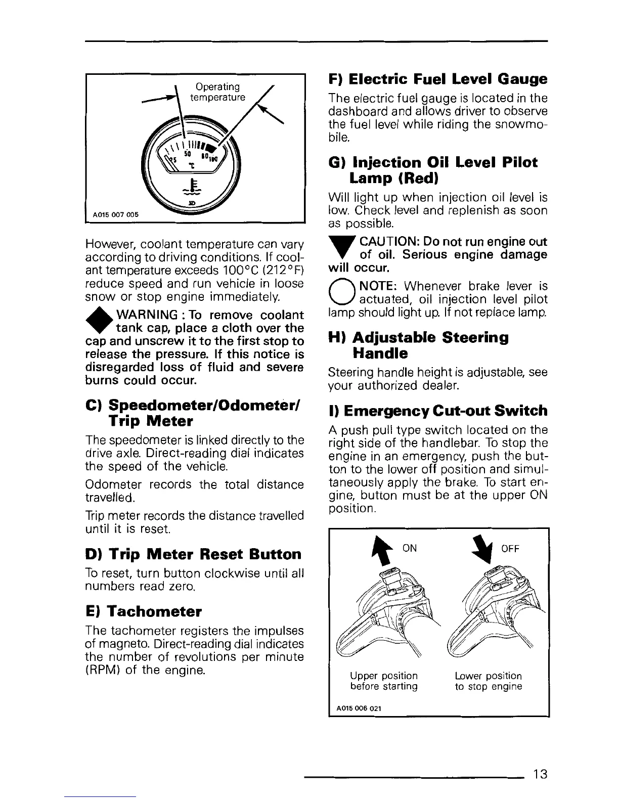 Ski-Doo Formula MX LT - Dashboard Instruments; Operation Controls and Switches