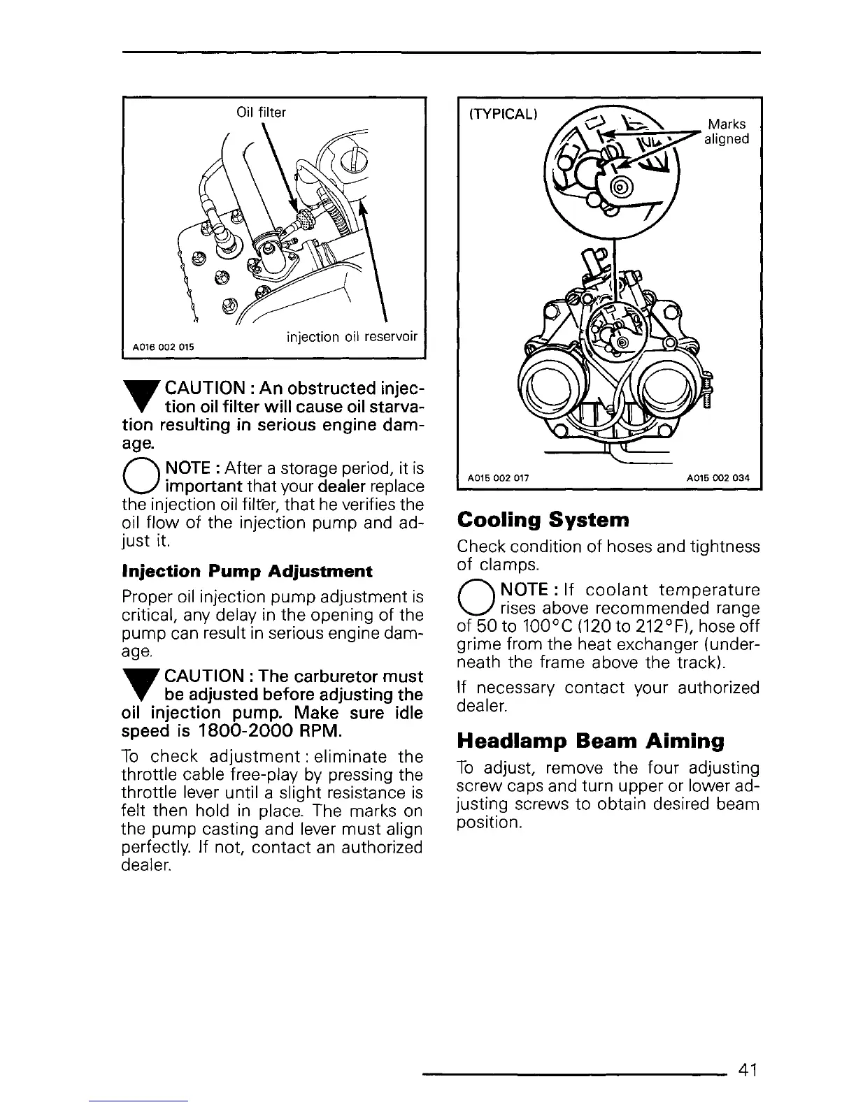 Proper oil injection pump adjustment