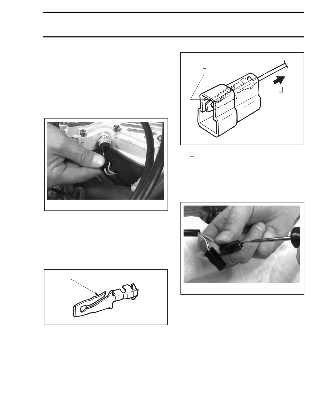 – While holding locking tab pried, pull connector