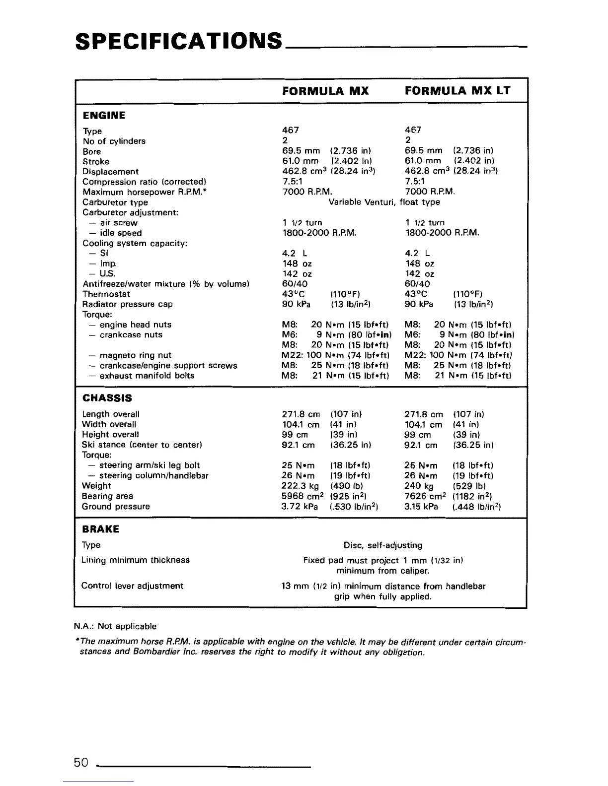 Ski-Doo MX - Specifications - Engine and Chassis; Engine Specifications; Chassis Specifications