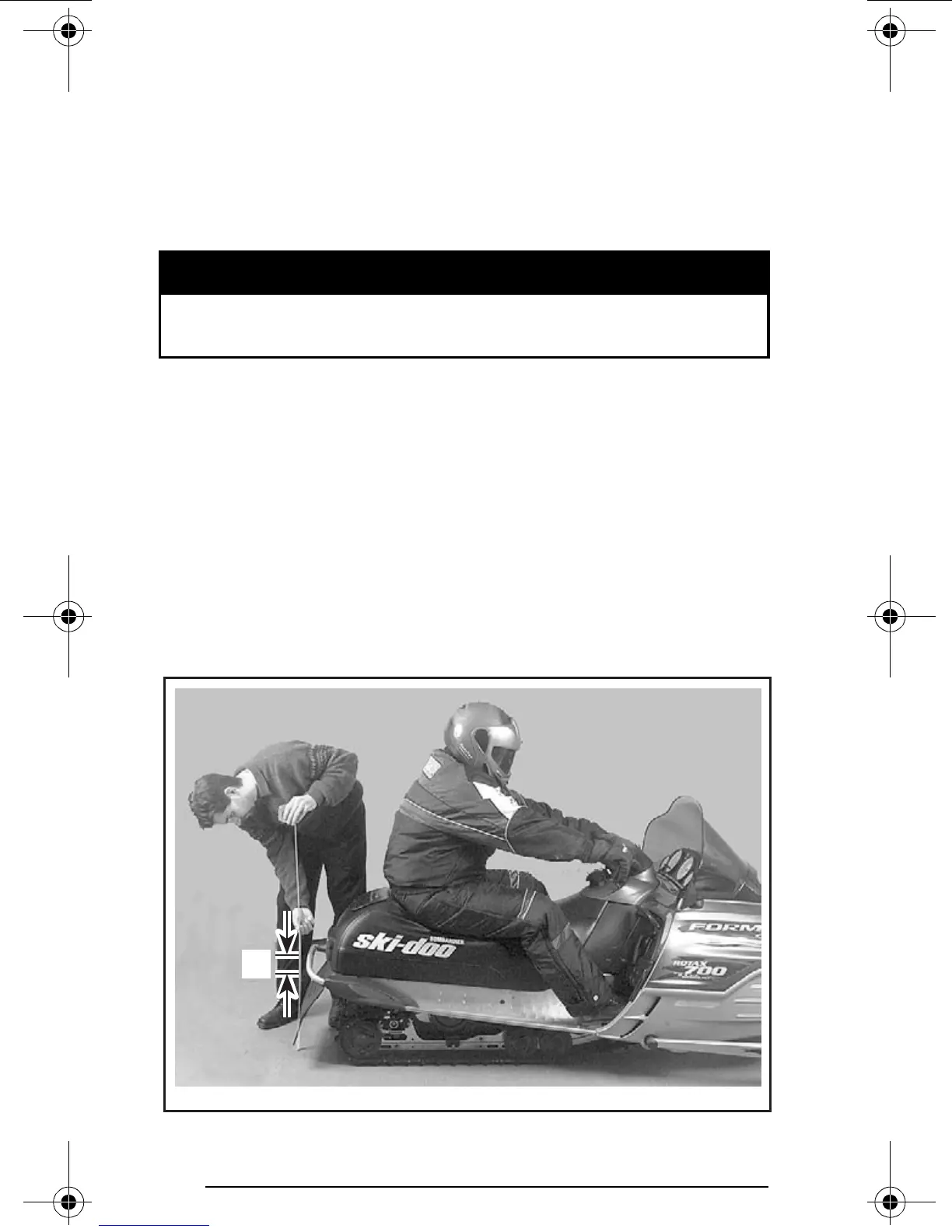 this point, rear of snowmobile should collapse by 50 to 75 mm (2 to
