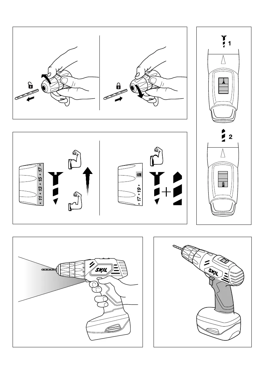 Skil 1006 - Advanced Operations and Handling; Bit Changing and Torque Settings; Gear Selection and Spot Light; Tool Handling and Grip