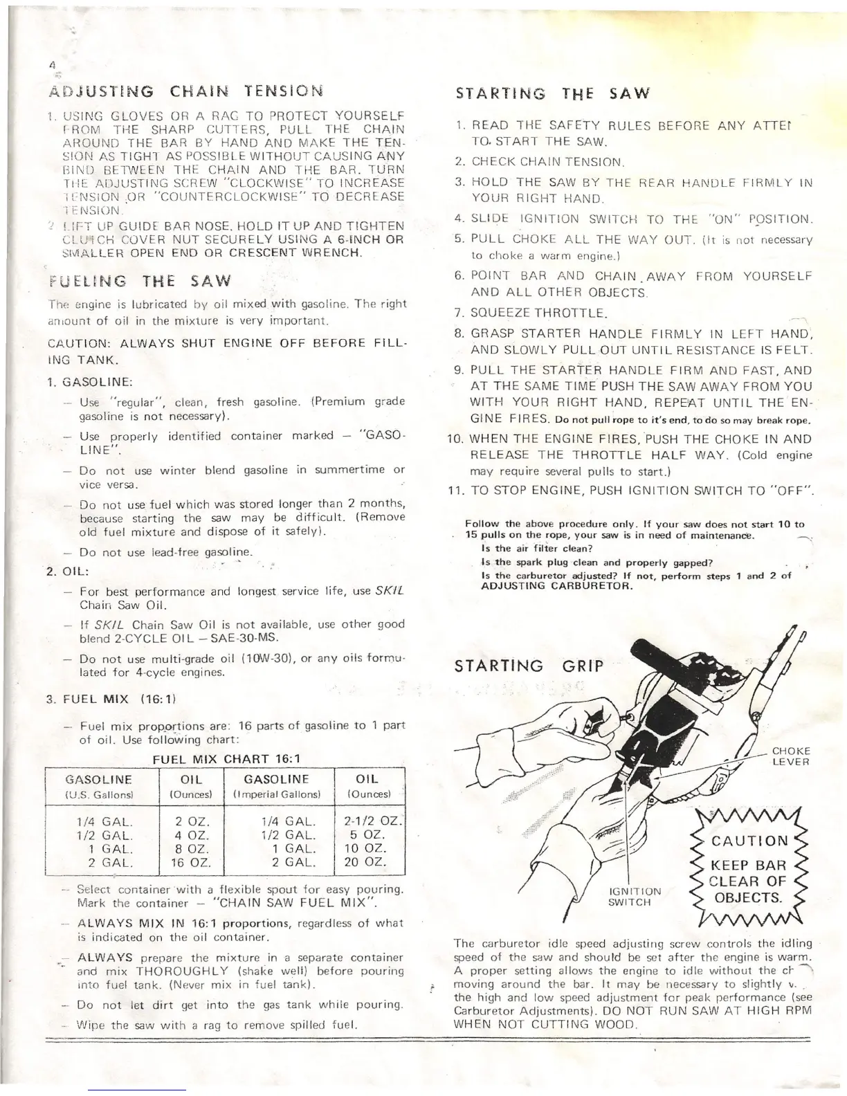 GRASP STARTER HANDLE FIRMLY IN LEFT HAND,