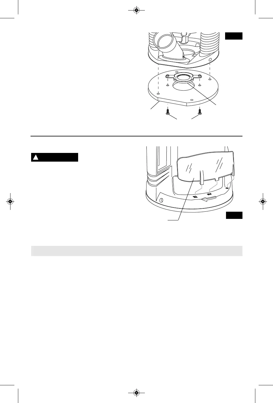 Placez l’adaptateur pour guide de gabarit sur les trous