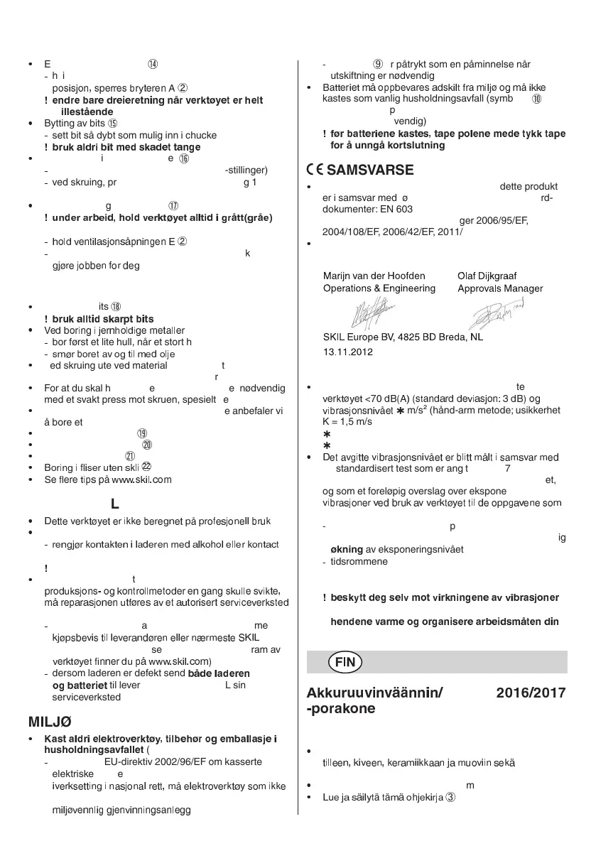 dokumenter: EN 60335, EN 61000, EN 60745, EN
