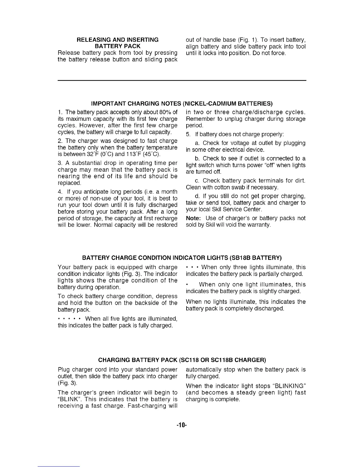 IMPORTANT CHARGING NOTES (NICKEL-CADMIUM BATTERIES)