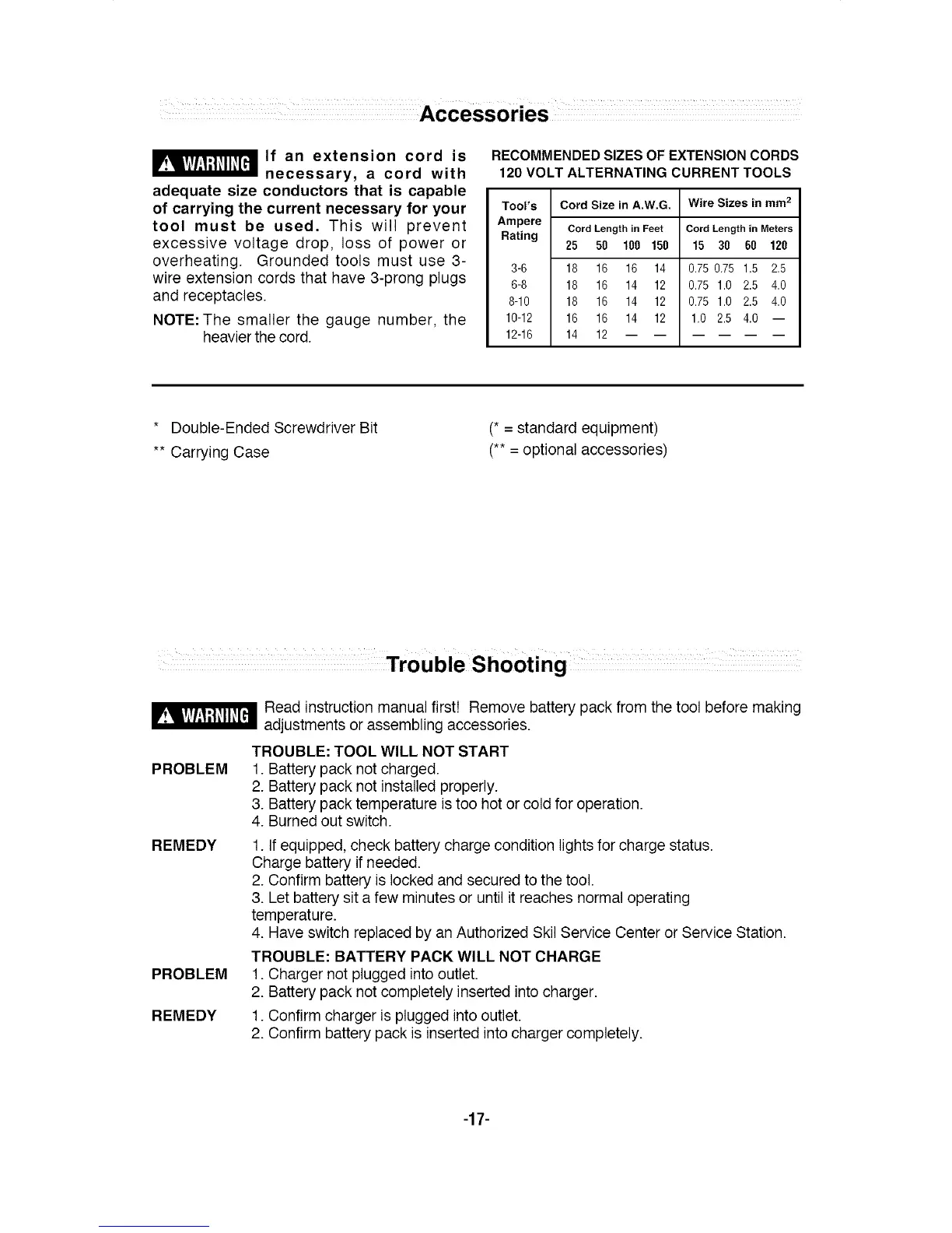 TROUBLE: TOOL WILL NOT START