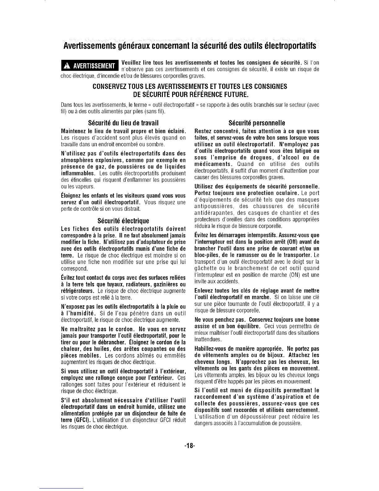 Dartstousles avertissements,le terme <<outil _lectroportatif >>se rapporte &des outils branch_ssur le secteur (avec