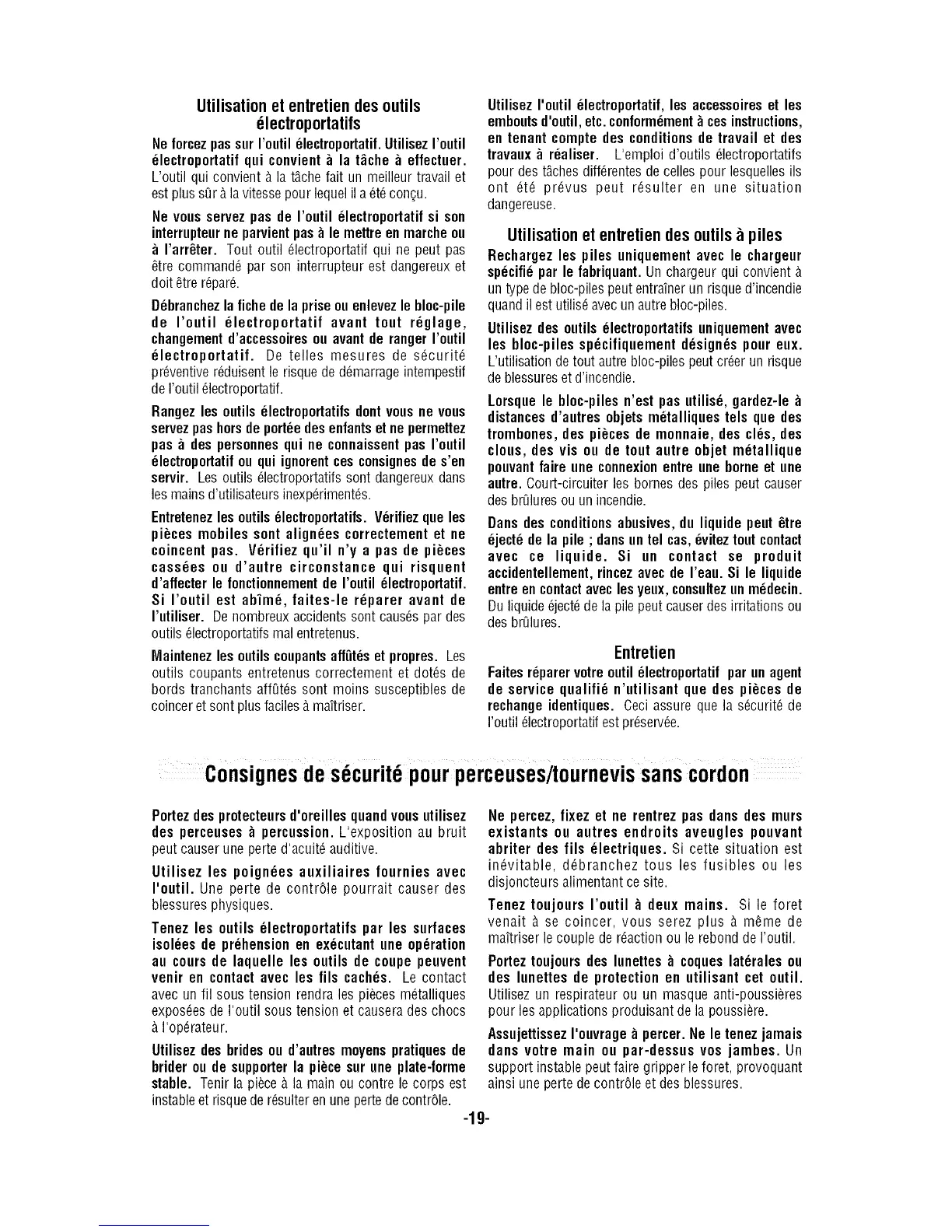 Entretenezles outils _lectroportatifs. V6rifiezque les