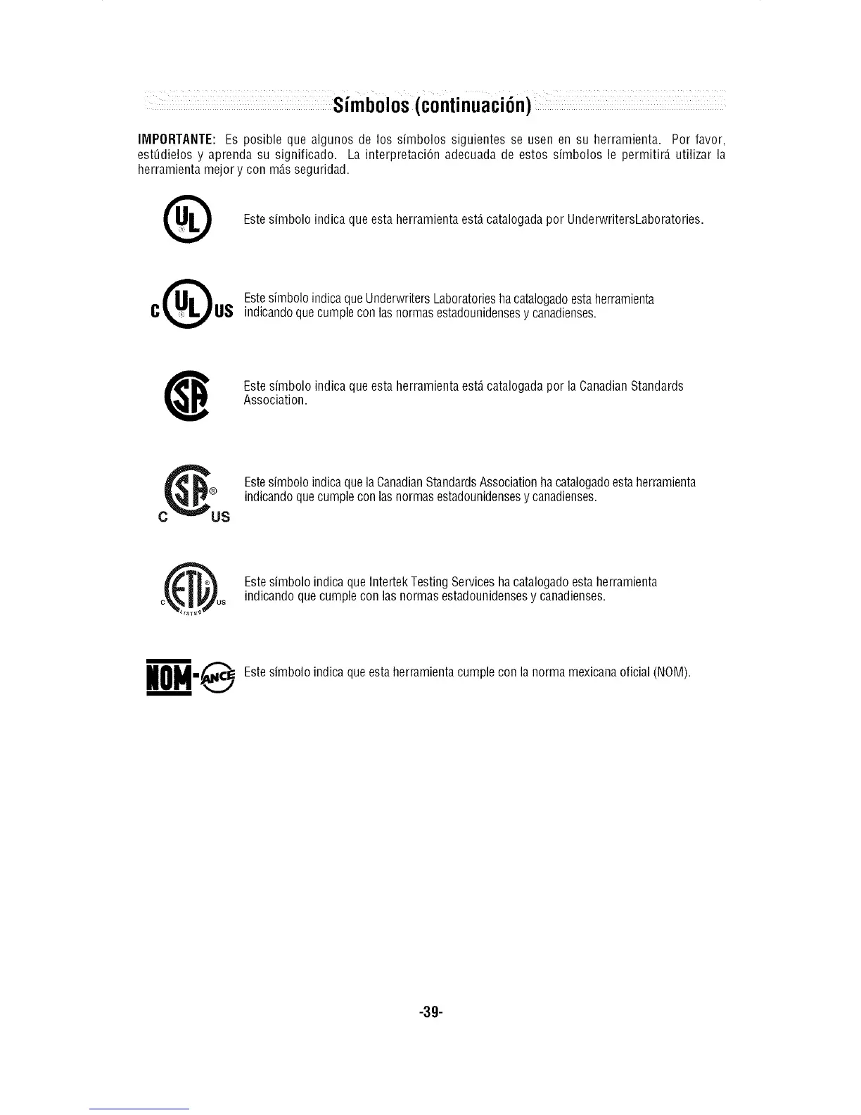 Estesimbolo indica que esta herramienta estAcatalogada por UnderwritersLaboratories.